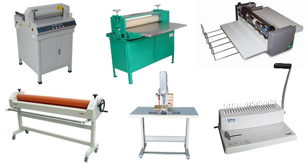 宏基全自動膠裝機二臺,過膜機兩臺,打釘機,打孔機各一臺,全自動壓線,啤線機一臺,聲威達920對開切紙機一臺